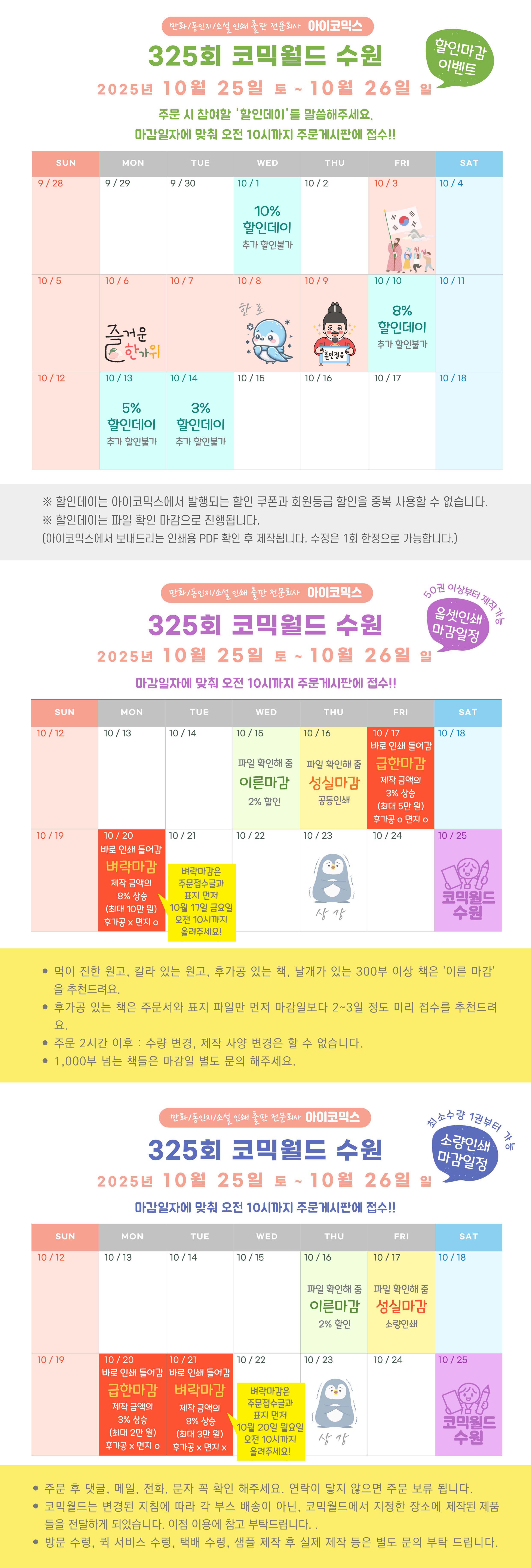 [¸¶°¨ÀϺ¯°æ] 2025³â 10¿ù ÄڹͿùµå325 ¼ö¿ø ¸¶°¨ÀÏ [2025³â 10¿ù 25ÀÏ ~ 26ÀÏ]