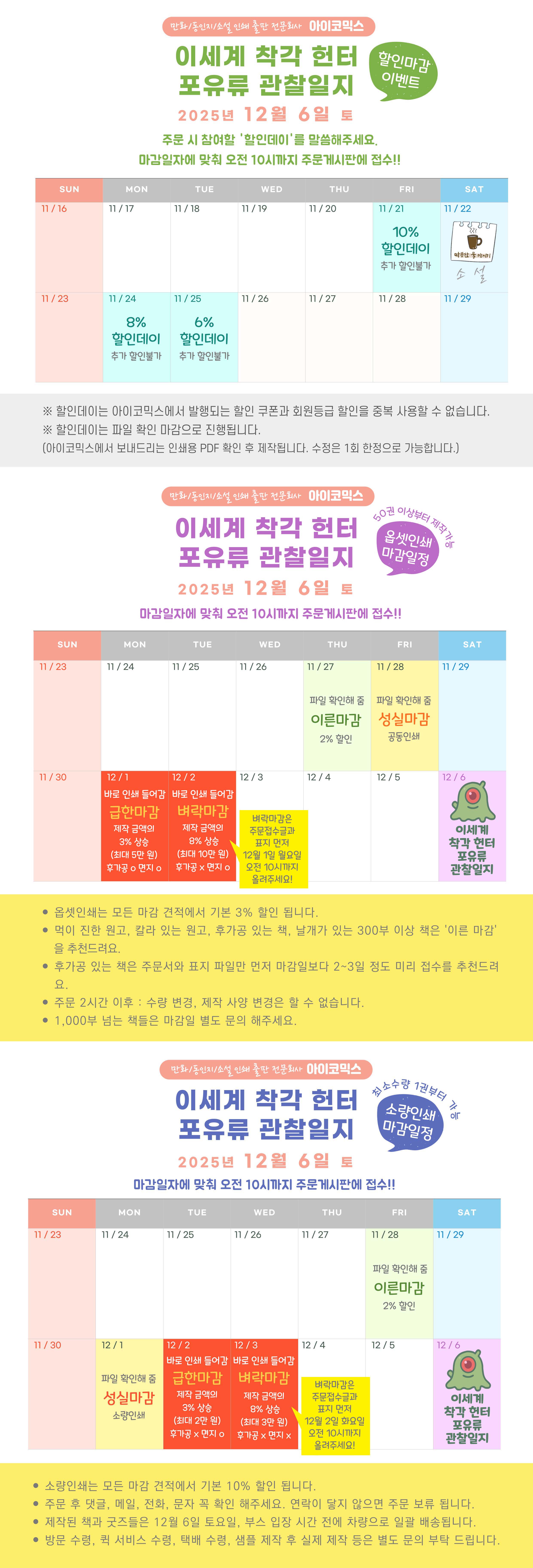 [¸¶°¨ÀÏ º¯°æ] À̼¼°è Âø°¢ ÇåÅÍ - Æ÷À¯·ù °üÂûÀÏÁö(2025³â 12¿ù 6ÀÏ)