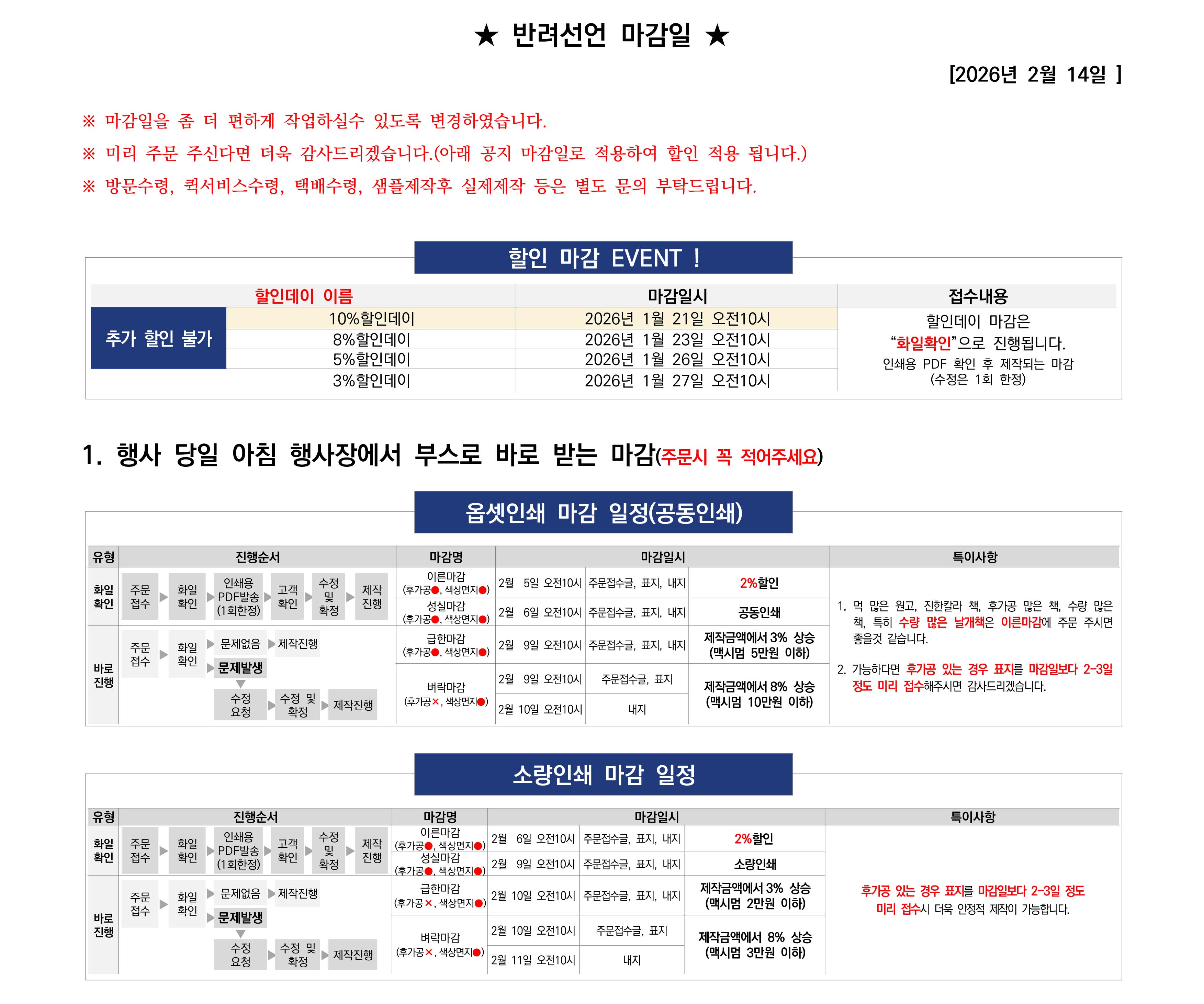 [¸¶°¨ÀÏ º¯°æ]¡Ú ¹Ý·Á¼±¾ð ¸¶°¨ÀÏ (Çà»ç: 2026³â 2¿ù 14ÀÏ)