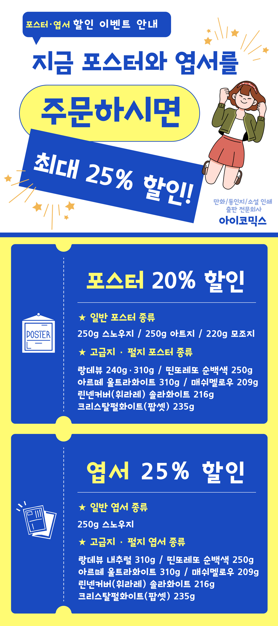 ÀϹÝÁö(250½º³ë¿ìÁö=250¾ÆÆ®Áö=220¸ðÁ¶Áö) Ä®¶óÆ÷½ºÅÍ ´Ü°¡Ç¥ ÀÔ´Ï´Ù. Ä«µåÅØ, ¿±¼, ¶±¸Þ¸ðÁö, ½ºÆ¼Ä¿, Çö¼ö¸· µîµµ Ãß°¡ ¾÷µ¥ÀÌÆ® ¿¹Á¤ÀÔ´Ï´Ù. ¸¹Àº °ü½É°ú »ç¶û ºÎʵ右´Ï´Ù. °¨»çÇÕ´Ï´Ù. ¡Ú¾ÆÀÌÄڹͽº A5 Ä®¶óÆ÷½ºÅÍ ´Ü°¡Ç¥¡Ú https://icomics.co.kr/bbs/board.php?bo_table=su081&wr_id=668&list_style=list ¡Ú¾ÆÀÌÄڹͽº B5 Ä®¶óÆ÷½ºÅÍ ´Ü°¡Ç¥¡Ú https://icomics.co.kr/bbs/board.php?bo_table=su081&wr_id=669&list_style=list ¡Ú¾ÆÀÌÄڹͽº A4 Ä®¶óÆ÷½ºÅÍ ´Ü°¡Ç¥¡Ú https://icomics.co.kr/bbs/board.php?bo_table=su081&wr_id=670&list_style=list ¡Ú¾ÆÀÌÄڹͽº A3 Ä®¶óÆ÷½ºÅÍ ´Ü°¡Ç¥¡Ú https://icomics.co.kr/bbs/board.php?bo_table=su081&wr_id=671&list_style=list ¡Ú¾ÆÀÌÄڹͽº B4 Ä®¶óÆ÷½ºÅÍ ´Ü°¡Ç¥¡Ú https://www.icomics.co.kr/bbs/board.php?bo_table=su081&wr_id=672&list_style=list ¡Ú¾ÆÀÌÄڹͽº A2 Ä®¶óÆ÷½ºÅÍ ´Ü°¡Ç¥¡Ú https://icomics.co.kr/bbs/board.php?bo_table=su081&wr_id=673&list_style=list ¡Ú¾ÆÀÌÄڹͽº B2(720mm*500mm) Ä®¶ó Æ÷½ºÅÍ ´Ü°¡Ç¥¡Ú https://www.icomics.co.kr/bbs/board.php?bo_table=su081&wr_id=674&list_style=list