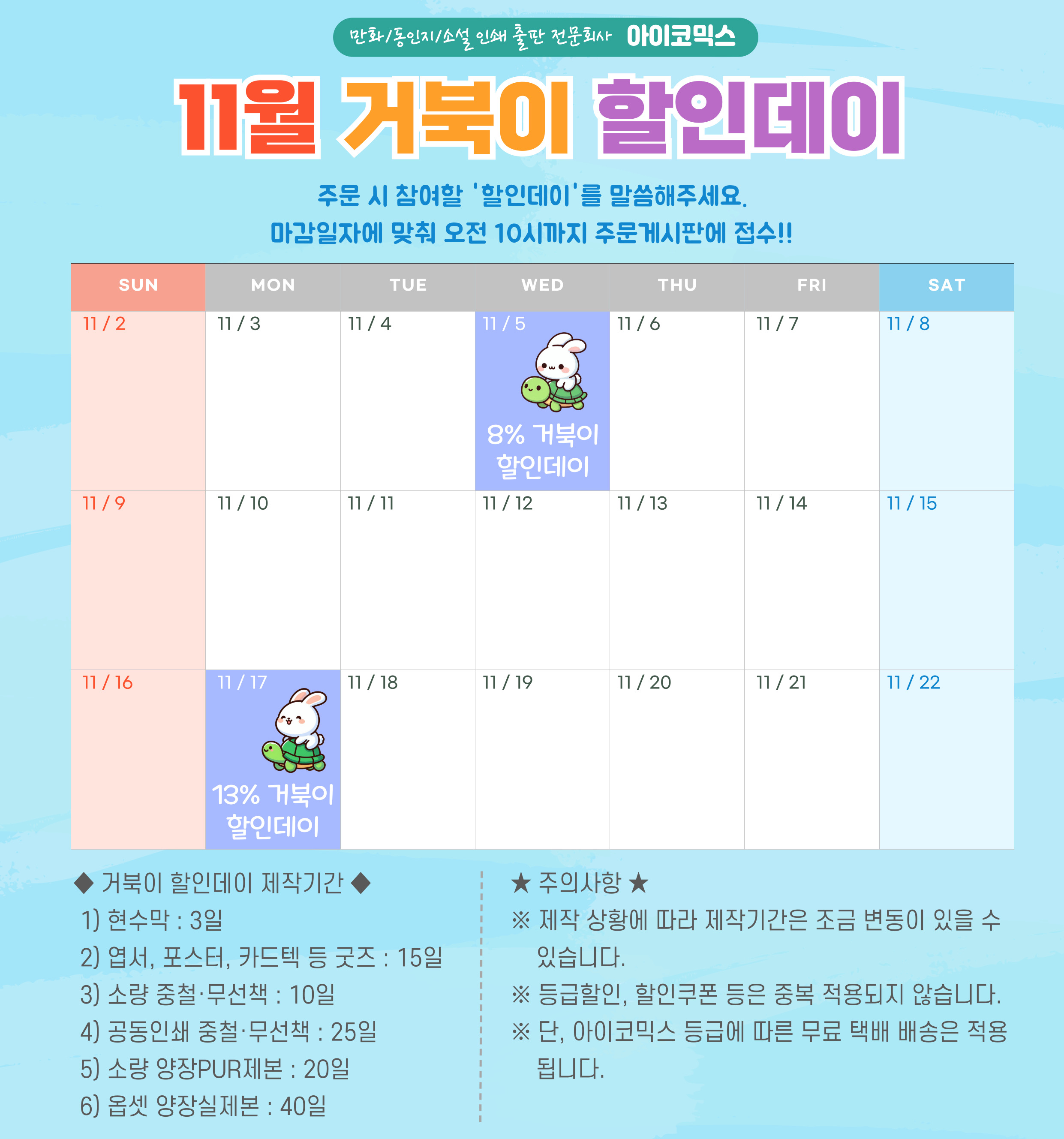 ¢¾ 11¿ù °ÅºÏÀÌ ÇÒÀε¥ÀÌ À̺¥Æ® ¢¾ ¡ß 11¿ù 5ÀÏ ¼ö¿äÀÏ : 8% °ÅºÏÀÌ ÇÒÀε¥ÀÌ ¡ß 11¿ù 17ÀÏ ¿ù¿äÀÏ : 13% °ÅºÏÀÌ ÇÒÀε¥ÀÌ