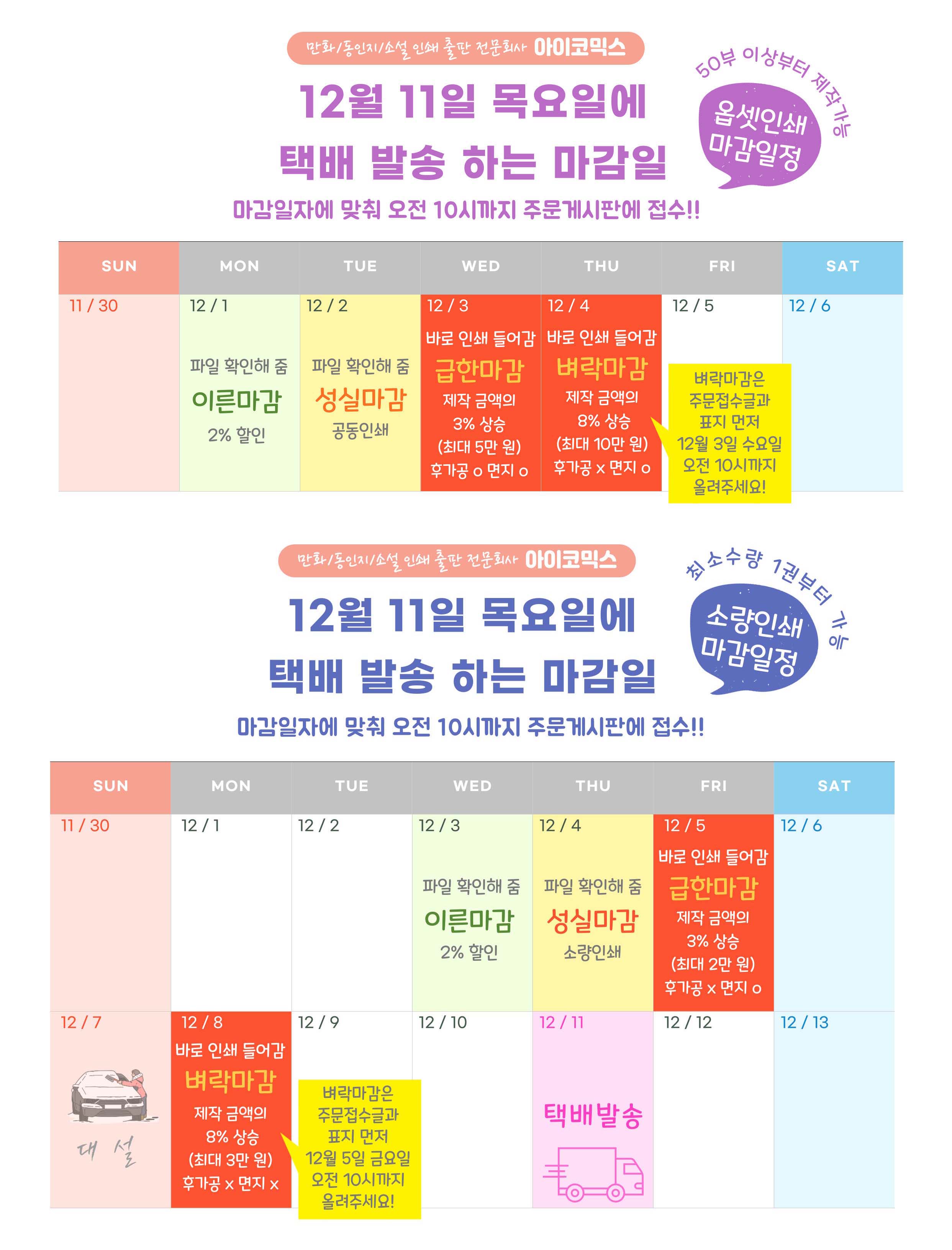 Á¦¸ñ : ¡Ø 12¿ù 11ÀÏ(¸ñ) ÅÃ¹è ¹ß¼ÛÇÏ´Â ¸¶°¨ÀÏÁ¤