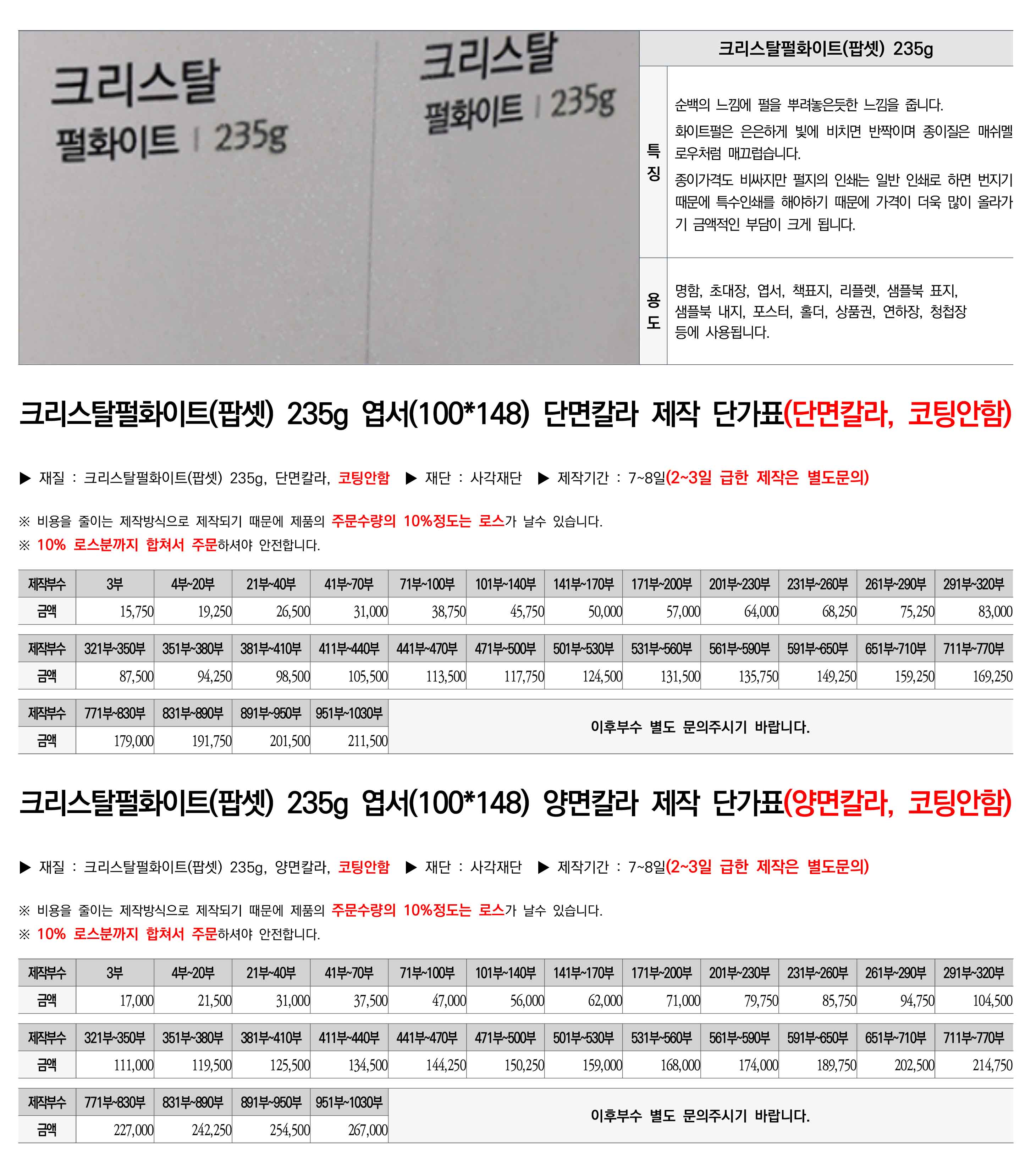 [°í±ÞÁö ¿±¼] Å©¸®½ºÅ»ÆÞÈÀÌÆ®(ÆË¼Â) 235g ¿±¼(148-100) ´Ü°¡Ç¥